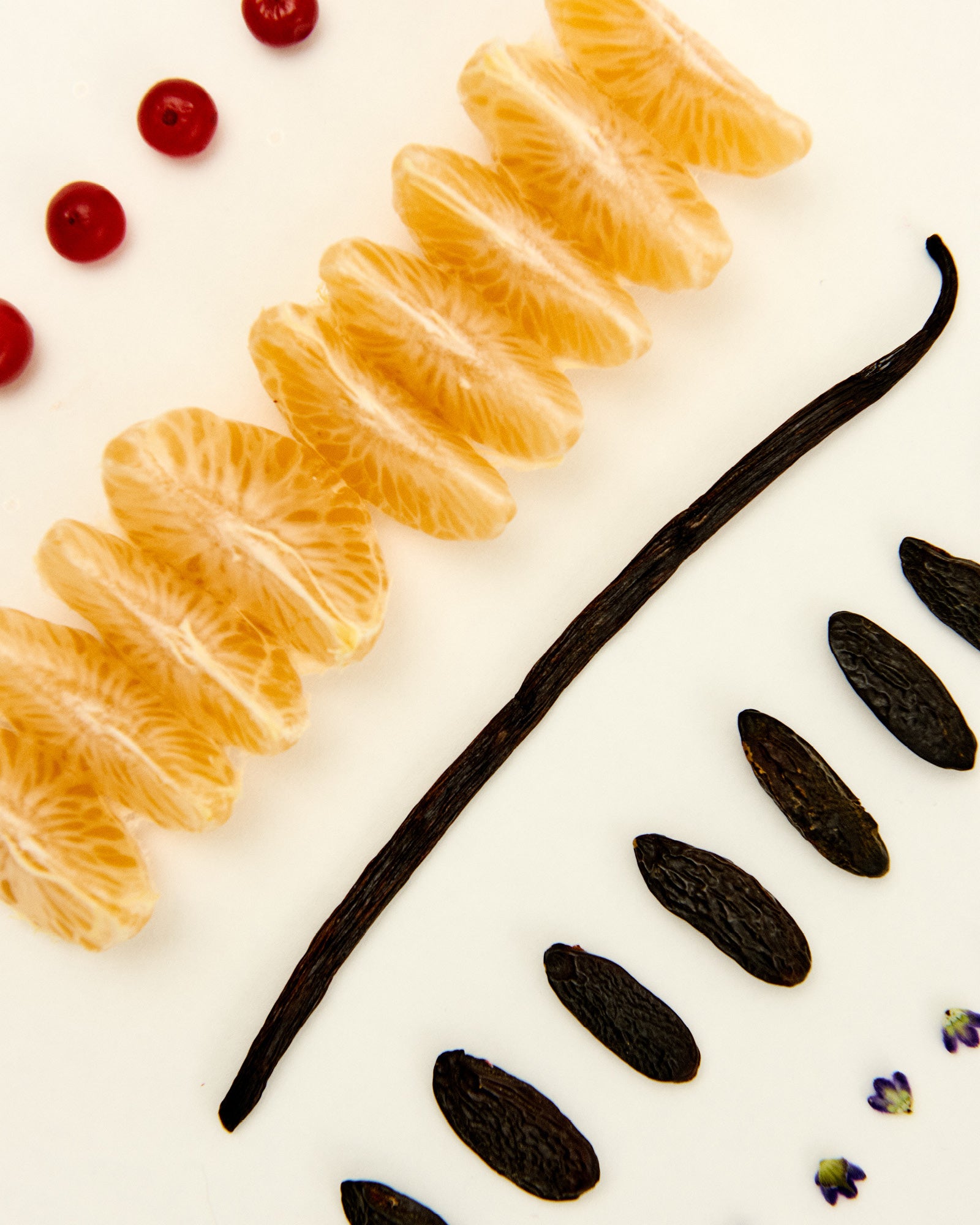 A bright splash of mandarin, grapefruit, and watermelon opens with playful ease. Lavandin, pink peppercorn, saffron, and clove add a soft spice shimmer before settling into cedarwood, dry amber, tonka, and creamy vanilla. Lighthearted energy with a polished finish.