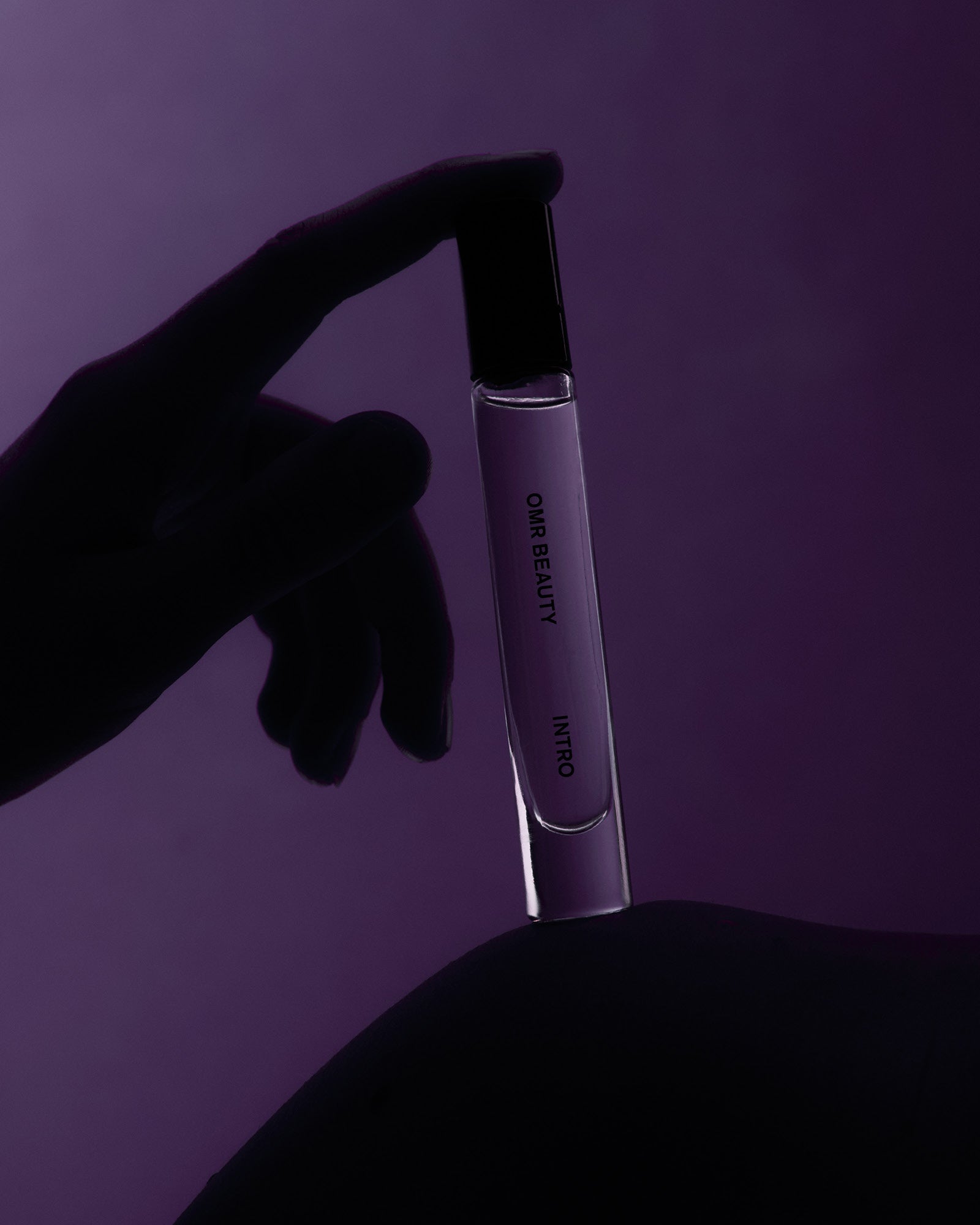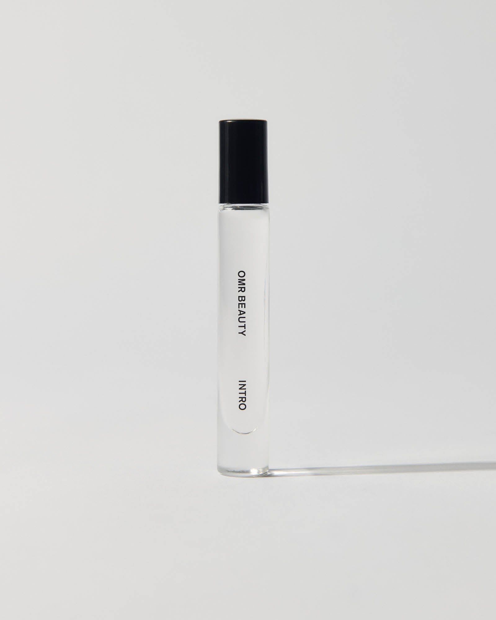 Bright grapefruit, spicy ginger, and pink pepper flare and fade—giving way to green leaves, soft florals, and a cocoon of orris, sandalwood, and amber. The pulse of INTRO, reborn as a concentrated oil—warmer, closer, endlessly alive on skin.